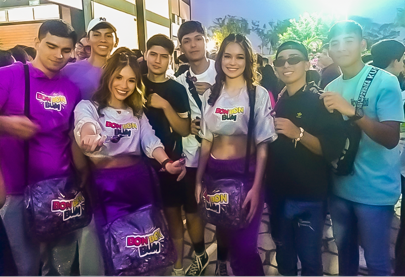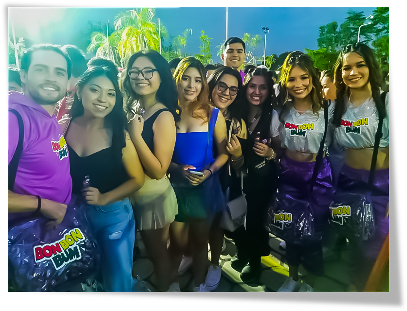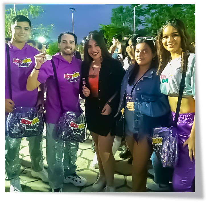 La activación fue concebida como una experiencia 360° de marketing experiencial, donde la marca no solo estuvo presente, sino que se convirtió en parte del show. A través de un equipo de promotores con identidad visual alineada al universo urbano del artista, se generó interacción directa con el público joven, sampling estratégico del producto y creación de contenido orgánico durante el evento. La energía del concierto se transformó en una plataforma ideal para fortalecer el posicionamiento de Bon Bon Bum dentro del territorio musical y conectar emocionalmente con la audiencia.